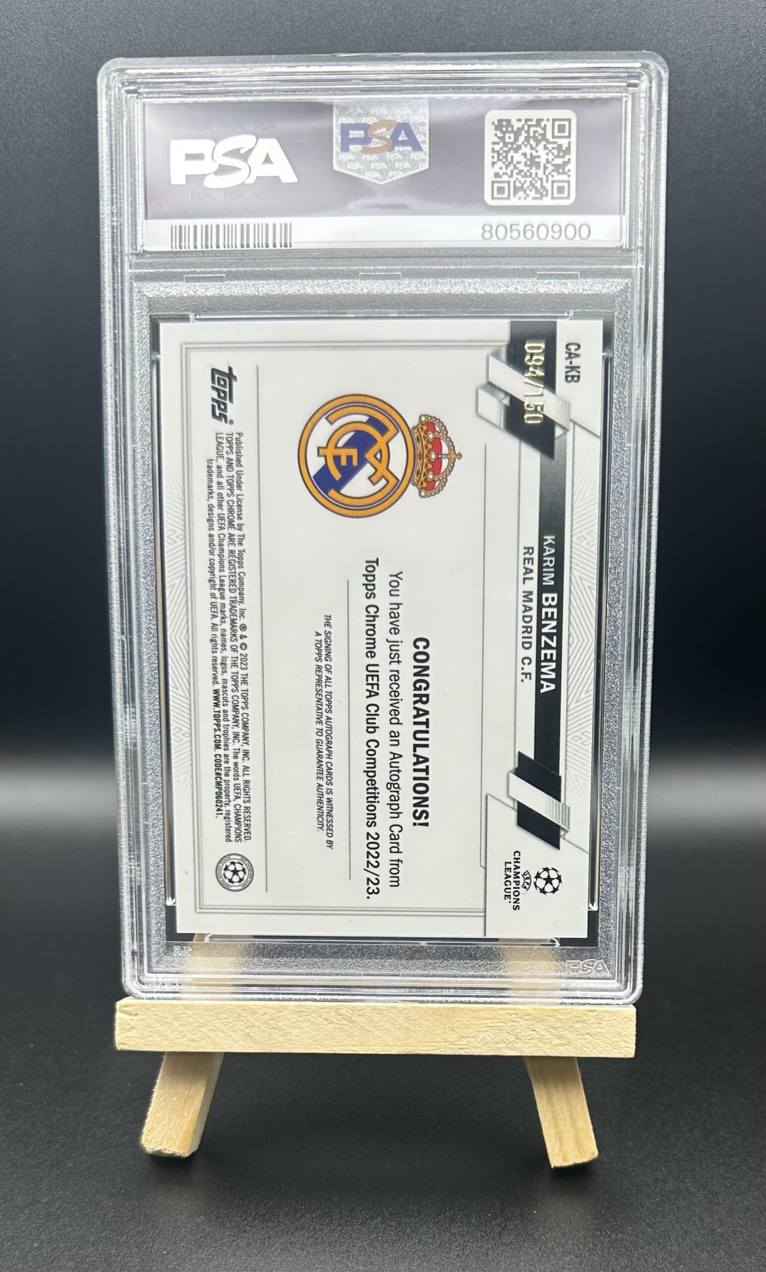 KARIM BENZEMA AUTOGRAPH 094/150 TOPPS CHROME UCC 2022 PSA 9